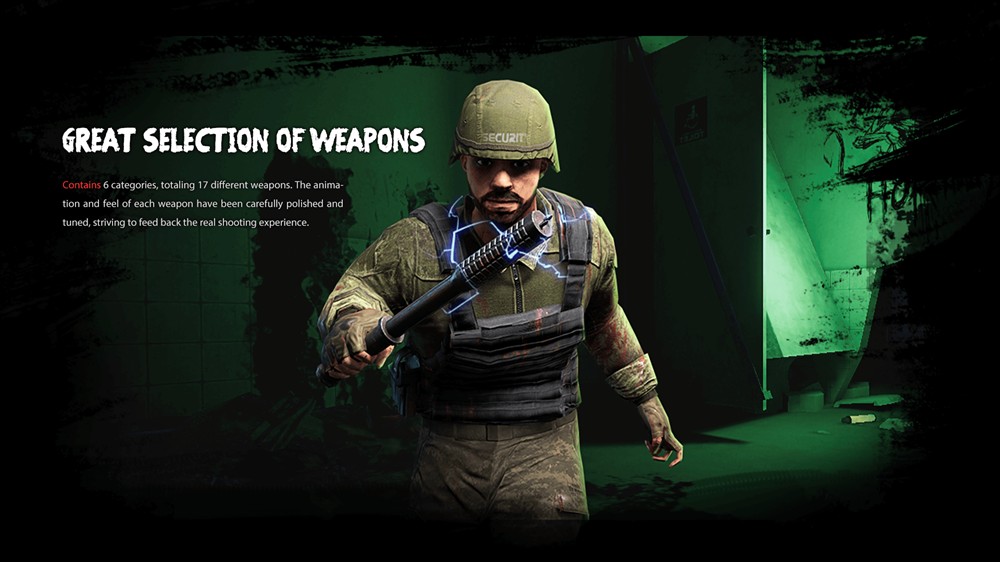 武器系统覆盖近战、手枪、冲锋枪、步枪、霰弹枪与特殊装备六大类别,共计17种可获取武器。每件装备均拥有独立的换弹动作、后坐力反馈、弹道衰减模型与环境交互效果,配合真实弹药消耗机制,让战斗选择兼具策略性与操作感。