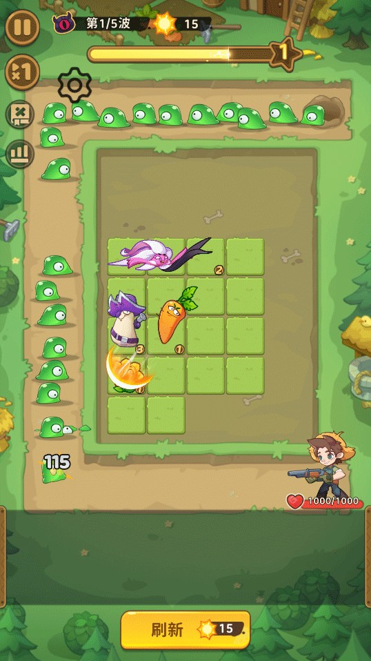 香蕉缺个芭乐是一款融合水果拟人、策略布局与轻度养成的放置类塔防游戏。在生机盎然的植物星球上,香蕉、芭乐、榴莲等水果化身英勇守卫,共同守护绿色家园。然而一场突如其来的危机打破宁静——邪恶势力大举入侵,怪物潮水般涌来。作为指挥官,你将在每轮随机抽取的植物与道具中灵活决策,通过布阵、合成、刷新与升级,构建专属防线,在轻松放置中体验层层递进的策略快感。