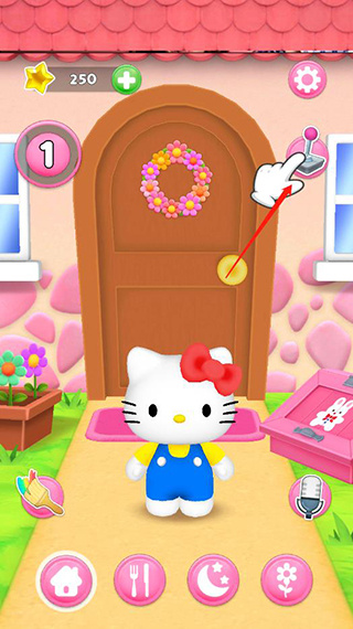 支持在凯蒂猫的温馨小屋中自由穿梭——客厅、卧室、厨房、花园等多区域开放,每个空间隐藏不同互动彩蛋与隐藏小游戏。点击物品即可触发动作,滑动屏幕切换场景,沉浸感强,鼓励主动发现与反复体验。