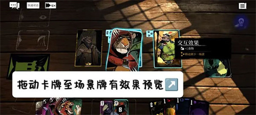 界面底部从左至右依次为角色技能卡区、角色状态卡区与资源卡区;中央动态生成3–6张场景卡,构成当回合的行动舞台。所有交互均双向可视化:长按场景卡,系统自动高亮可响应的手牌;反之长按手牌,则精准标出可作用的场景卡并实时显示交互效果说明。