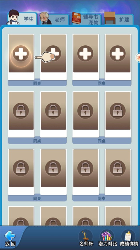 普通教师主要通过通关考试关卡获得,初始品质可升至“优秀+”,后续升品需依赖特聘室进一步培养。