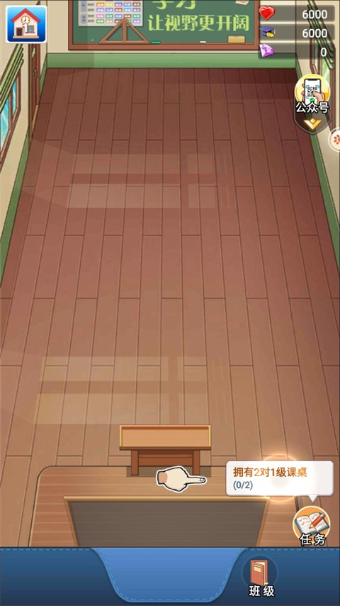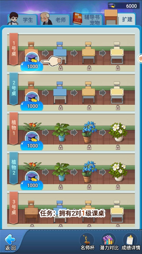 3、根据新手引导,完成首个任务:购买两张课桌;