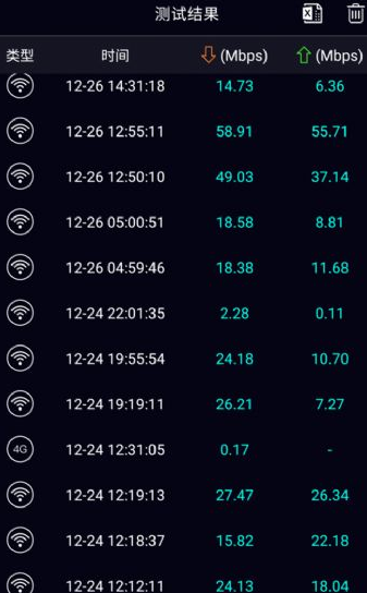 3、自动归档全部历史测速数据,支持按时间、地点、网络类型筛选回溯,便于长期趋势比对与问题定位。