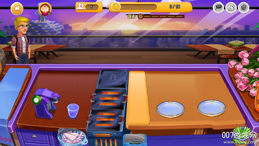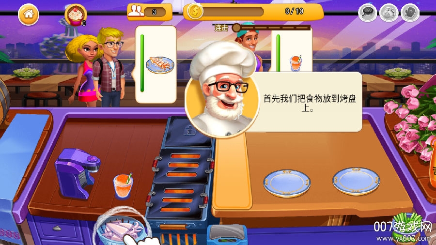 自由组合食材与厨具,研发专属菜品,应对不同口味偏好的顾客;完成订单获得好评与金币,推动餐厅持续升级。