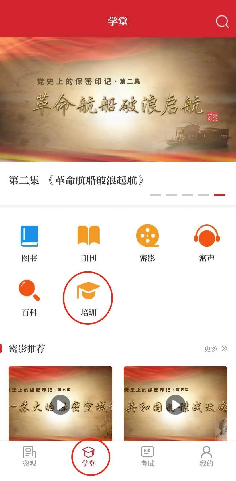 第一种:点击首页顶部轮播图中的【保密培训】入口;