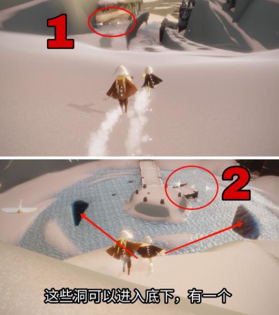 3. 沙丘凸起处的隐蔽山洞内,入口较窄,注意低空滑入。