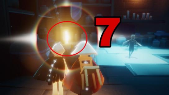 6. 晨岛神庙后门正前方石阶中央,背对神庙即可直观看到。