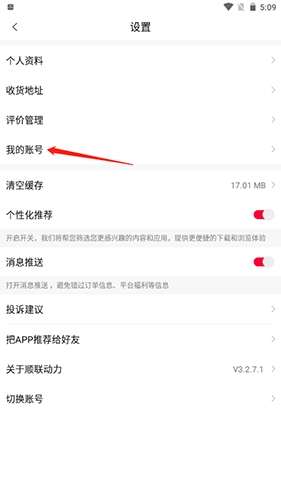 2. 在设置页中选择【我的账号】进入账户管理界面;