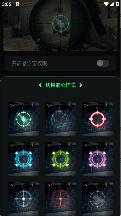 1、支持实时切换多种准心样式,一键关闭准心,适配不同射击习惯与场景需求;