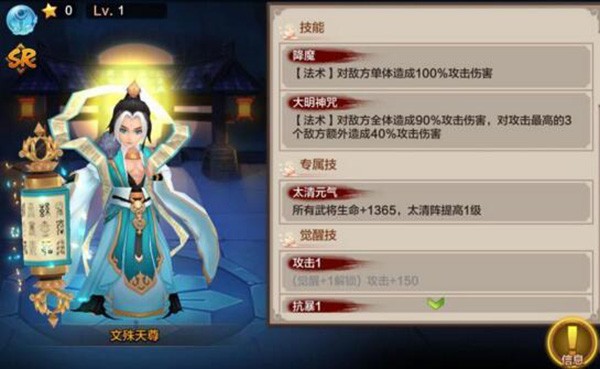 文殊天尊:全体攻击+精准打击敌方前三高攻单位,专属技提升全队生命值,兼具输出与容错;