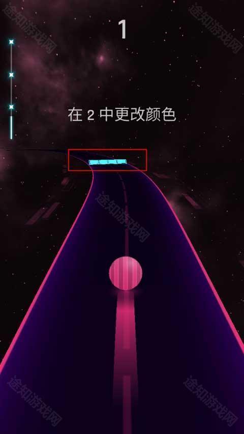 3、核心操作仅需单指滑动:跟随节奏控制小球撞击同色目标,途中收集钱币与宝箱;过程中小球将随机变色,要求玩家快速识别并调整操作策略,极大考验节奏预判与临场应变能力。