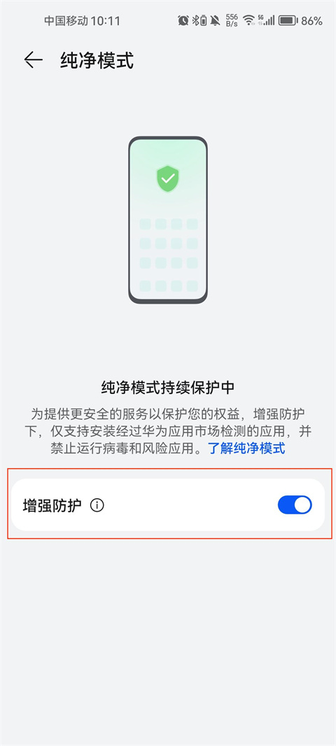 3、系统将直达纯净模式设置页,关闭后立即恢复安装权限。