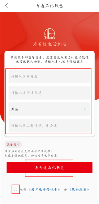 微信用户还可通过【中石化一键加油】小程序开通:进入小程序 → 点击【钱包加油】→ 按指引填写资料完成开通。