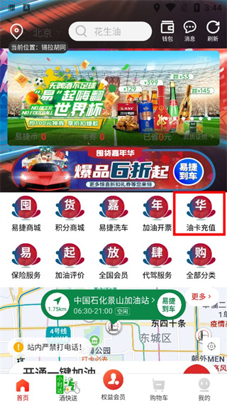 打开易捷加油App,进入首页【油卡充值】入口。