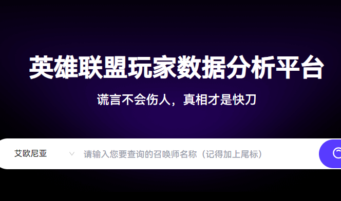 2、进入首页,选择对应游戏大区(如艾欧尼亚、祖安等),输入目标召唤师名称,点击“查询”即可秒出完整战绩页;