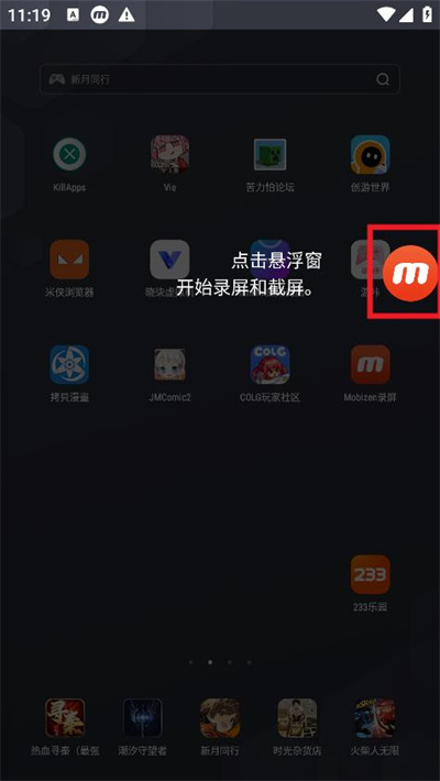 1. 点击屏幕右侧的悬浮窗即可快速启动录屏或截屏功能。