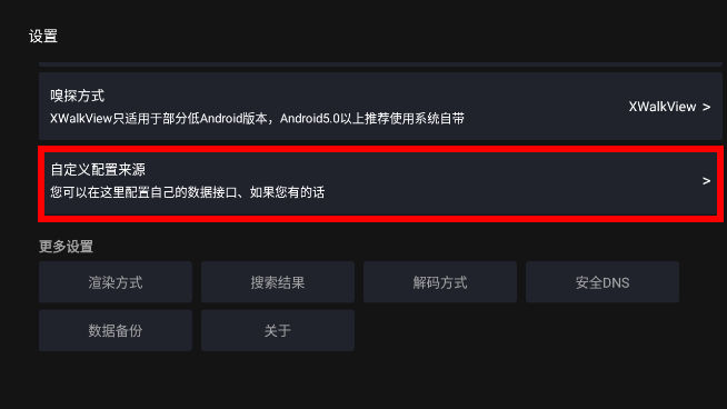 进入设置页面后,向下滑动,找到“自定义配置来源”选项。