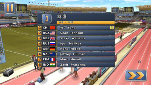 2. 进入比赛后可查看参赛选手名单,各国运动员齐聚一堂。