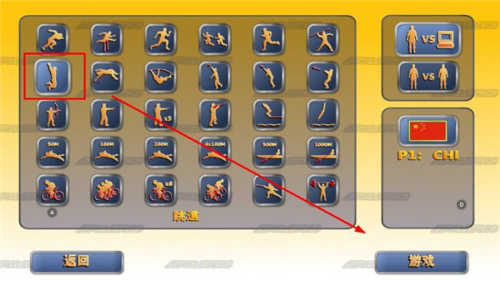 1. 在主界面点击“体育竞赛”,选择目标项目(以跳远为例)。