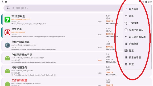 4、根据个人需求,选择对应功能进行操作,例如备份应用、管理权限或调整显示设置等。