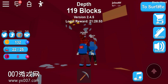 随着装备升级,你将能进入更深的地层,挖掘金矿、钻石甚至神秘金箱子。此外,游戏内还设有节日限定装扮与其他特色商店,满足个性化需求。