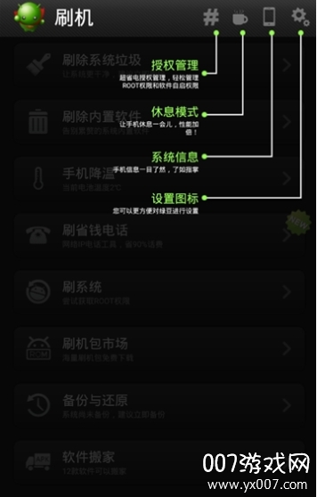 刷机工具:集成一键ROOT、重启至Recovery/Fastboot等实用工具,玩机更随心所欲。