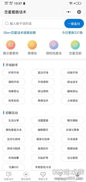 聚焦“恋爱实战”,持续更新由资深情感导师与成功用户分享的聊天技巧与攻略,帮你快速掌握高情商沟通逻辑。土味情话每日更新,紧跟网络热梗与流行语,巧妙化解尬聊,让对话自然又有趣。