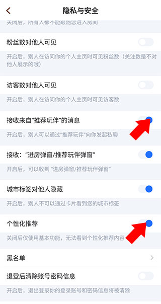 4、在隐私设置页面中,找到相关推荐通知选项并将其关闭即可。