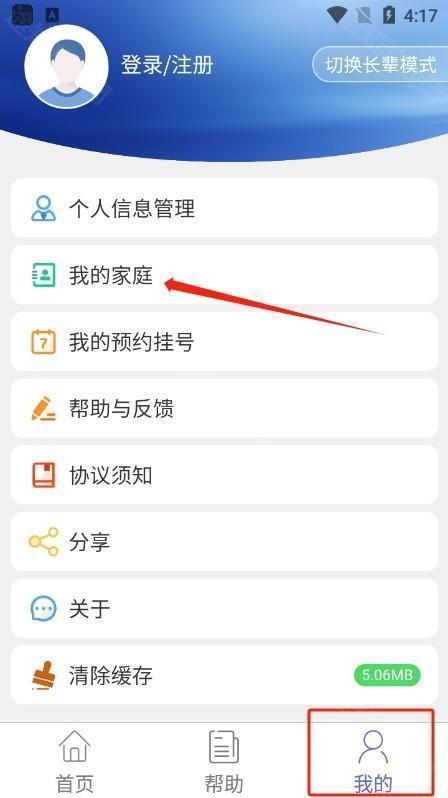 1、进入首页底部导航栏,点击【我的】→【我的家庭】;