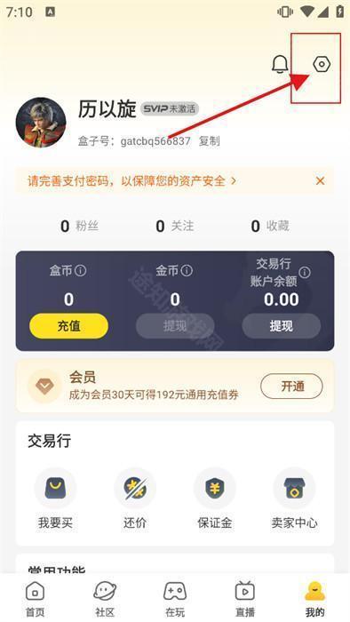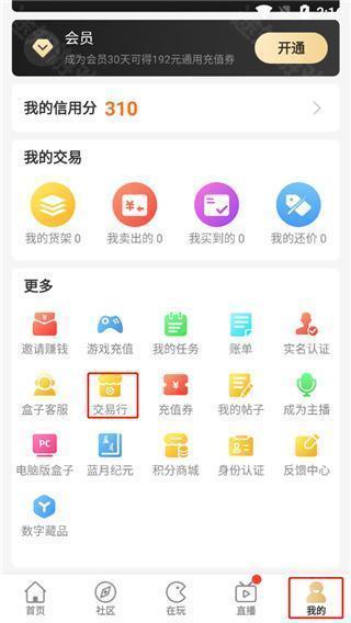 - 进入平台后启动任意一款传奇游戏,当账号内拥有可交易的角色或货币时,点击底部导航栏的“我的”,在个人中心找到“交易行”入口;