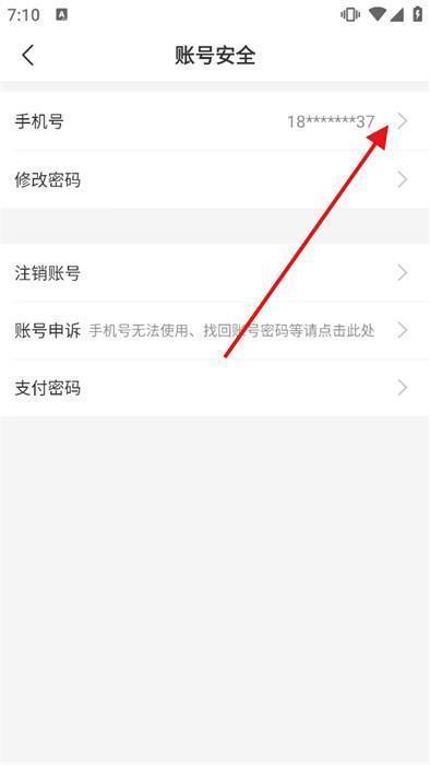 - 点击“手机号”选项,即可进入更换流程;