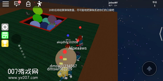 开始后,场地中间会掉落一堆巨型弹珠,我们要尽可能将更多的弹珠推入己方的口袋。建议弹珠掉落之前站在对方的场地上,这样弹珠掉落到地面直接我们就可以直接往前推了。一部分队友也可以选择去干扰对手,让他们不能轻易地将球推进口袋!