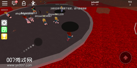 玩家所处的小岛上会不断掉落岩浆,会有黑色圈圈的提醒,随着时间推移,掉落的速度和数量会逐步增加。最好的办法就是保持走动,这样更容易躲避,比较考验玩家的反应能力。