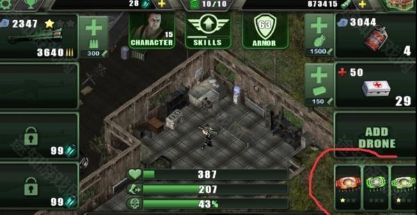 角色界面右下角有三个芯片槽,推荐配置为一红二绿:红色芯片提升血量(400左右已足够,医疗包充足);蓝色芯片增加奔跑速度,适合移动较慢的角色;绿色芯片则大幅提升攻击力与暴击率,是核心输出保障。角色最高等级为30级,技能点有限,建议优先加点绿色芯片相关技能,最大化输出效率,实现轻松升级与高效清怪。