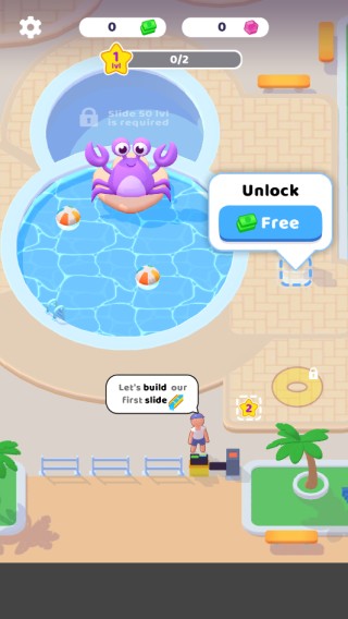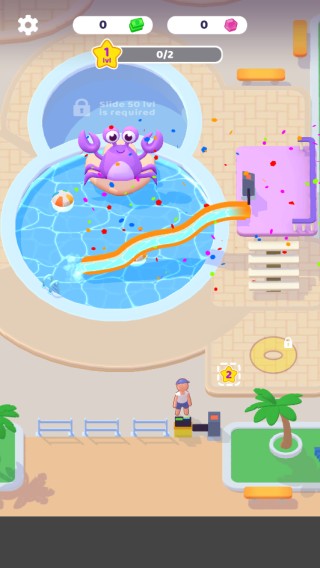 1. 自由建造多样化的游乐设施,包括高速水滑梯、造浪池、互动喷泉等,并搭配照片展示区与绿化景观,打造独一无二的视觉风格与游玩氛围。
