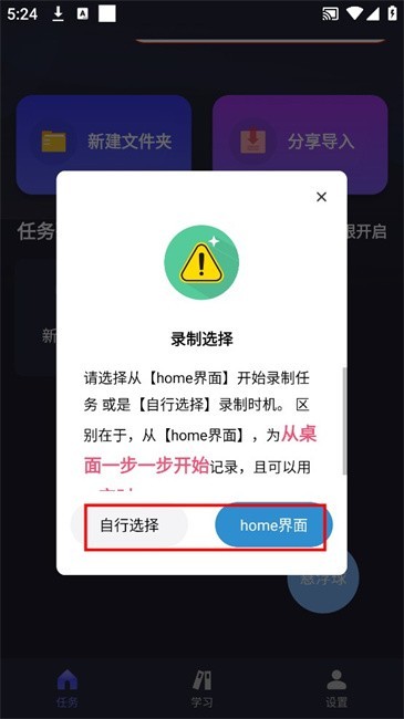 6.可“自定选择”录制时机或是从“home界面”开始录制任务