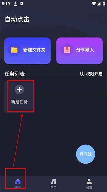 4.授予权限后接着在【任务】点击“+新建任务”