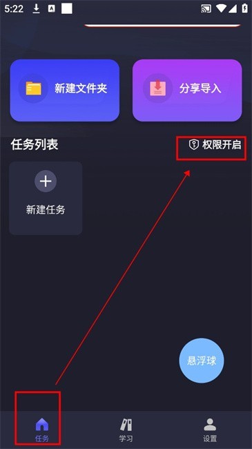 3.正式进入软件在【任务】区先授予权限,点击“权限开启”
