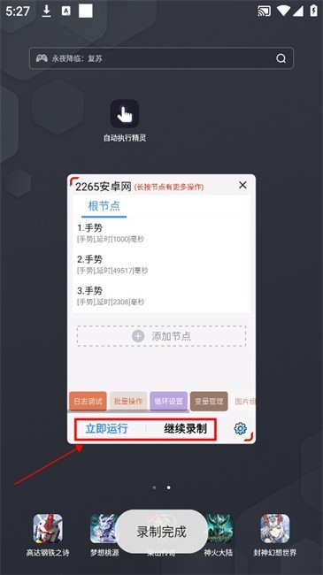 8.录制成功后可立即运行,如有需要,还可以继续录制