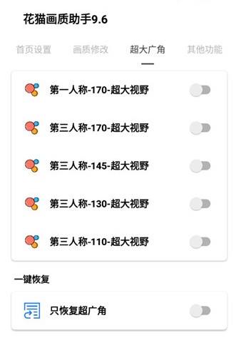 3、点击超大视角,我们还可以设置第一人称、第三人称110、130、145、170等超大视野。
