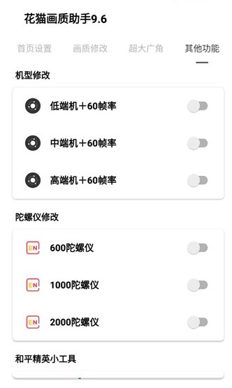 4、而在其他功能中,我们还可以调整机型修改、陀螺仪修改、和平精英等小工具。