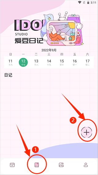 1、点击下方的日记选项,点击右边的“+”。