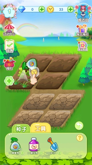 2、查看当前拥有的种子,选择合适的地块开始种植;
