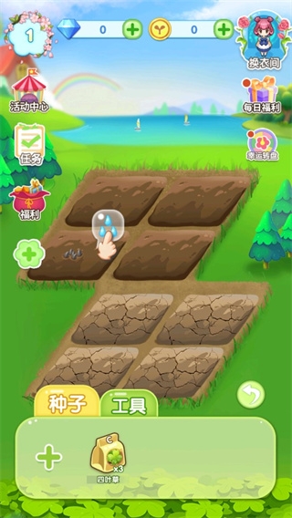 3、在植物生长期间,记得定时浇水,成熟后即可获得金币奖励;