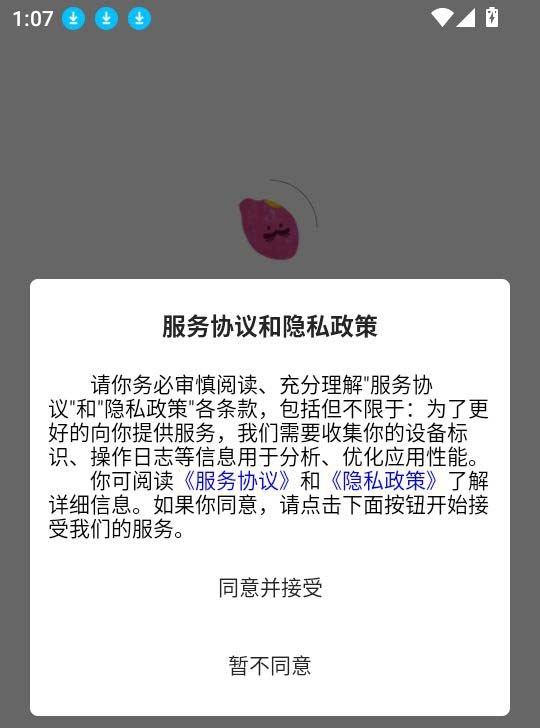1、首先打开蜜薯小说点击“阅读并接受”按钮来进入app中。