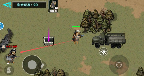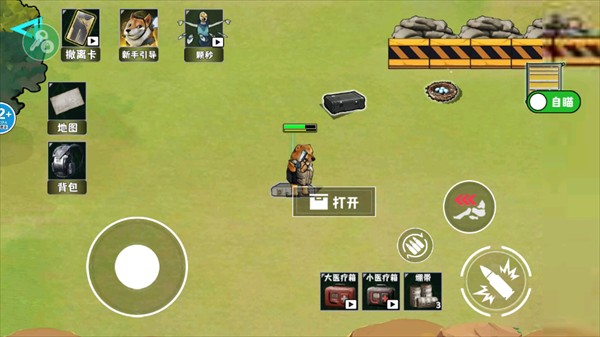 1、进入战场后,第一时间搜寻场景中的各类物资。靠近可拾取物品时点击即可自动获取,确保装备与补给充足。