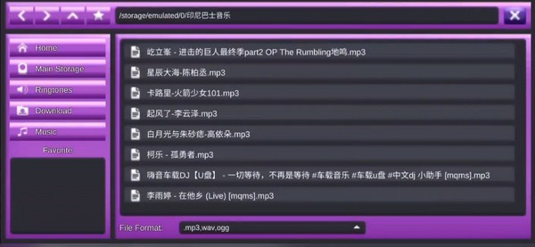 7. 切换至手机根目录,导航至你存放音乐的文件夹位置。