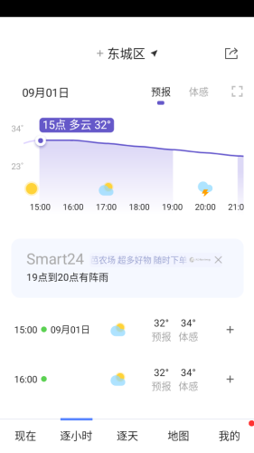 2. 向下滑动或切换页面,可查看未来48小时逐小时预报,精确到每个小时的天气变化;