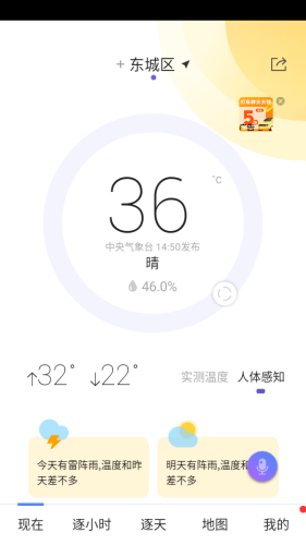 2. 实时天气感知:不仅显示当前气温,更通过综合湿度、风速、日照等多要素,计算出贴近人体真实感受的“体感温度”。