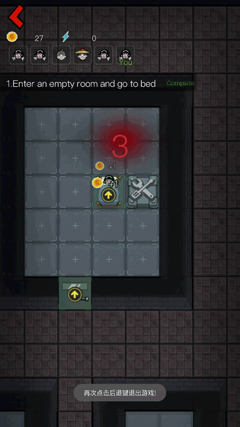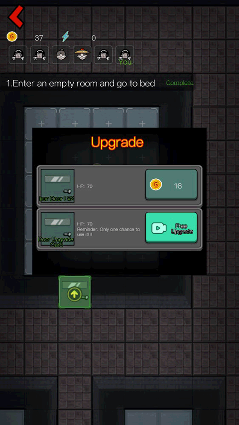 - 当床铺达到每秒32金币时,建造2–3台游戏机(至少1台升至2级),确保电力供应,并将房门升级为三级钢门。